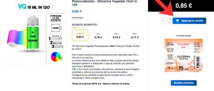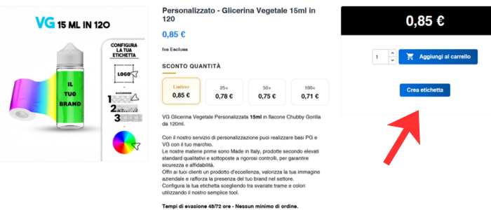 All’interno del prodotto clicca su “Crea Etichetta” per accedere al configuratore.