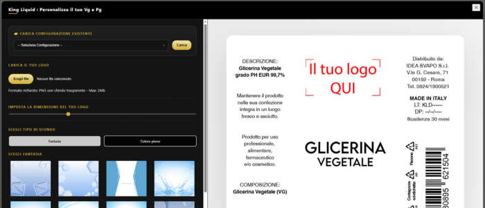 Con il Personalizzato King Liquid il brand sull’etichetta è il tuo. Noi produciamo. Tu costruisci valore nel tempo.